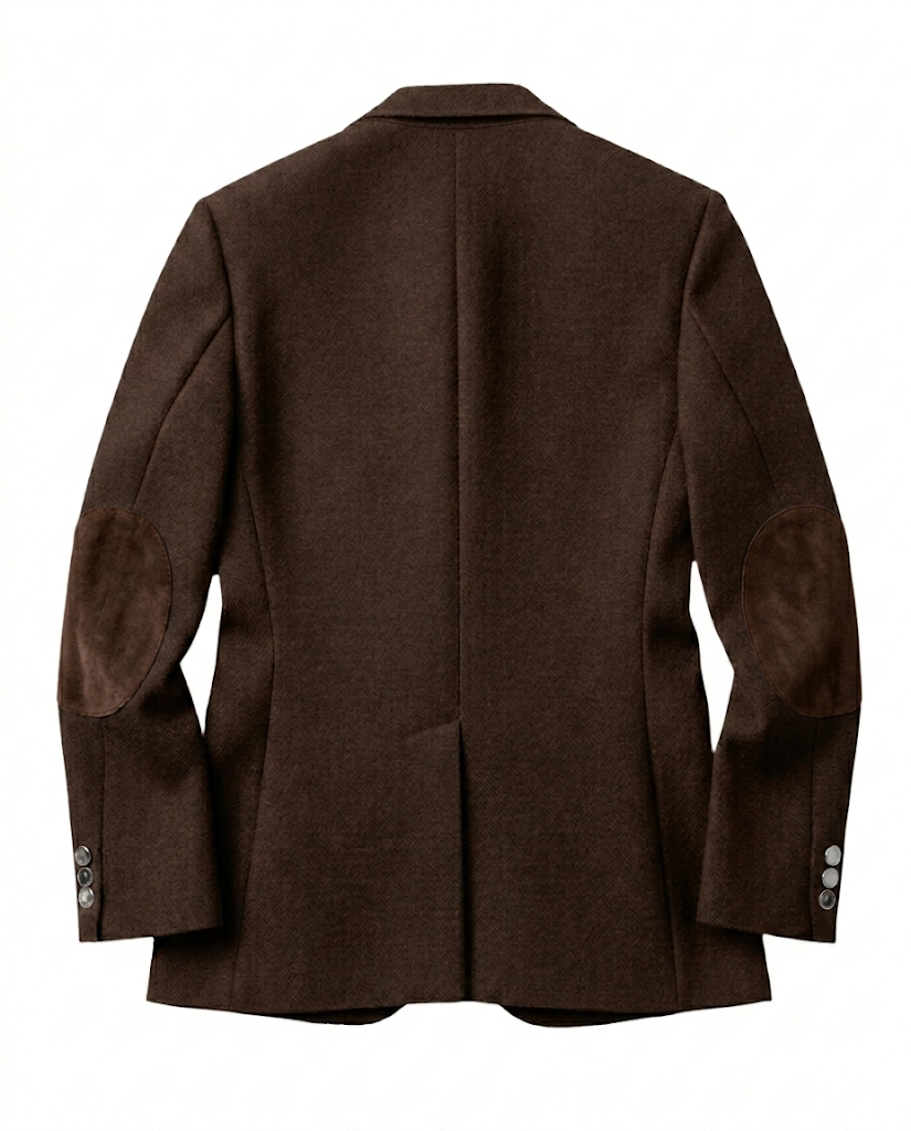 Designed with structured peak lapels and a single-breasted two-button closure, it offers elegant tailoring with everyday comfort. The embroidered JÓHJO crest patch on the chest pocket adds a distinctive heritage touch inspired by classic collegiate style and old-money aesthetics.